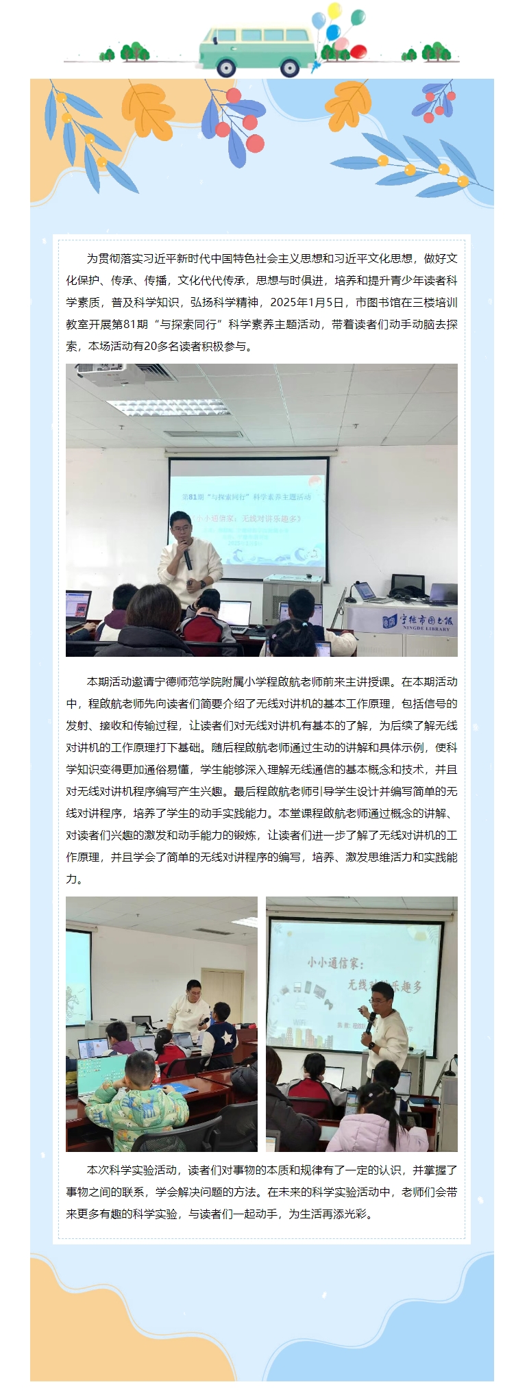第81期“与探索同行”科学素养主题活动《小小通信家:无线对讲乐趣多》成功举办