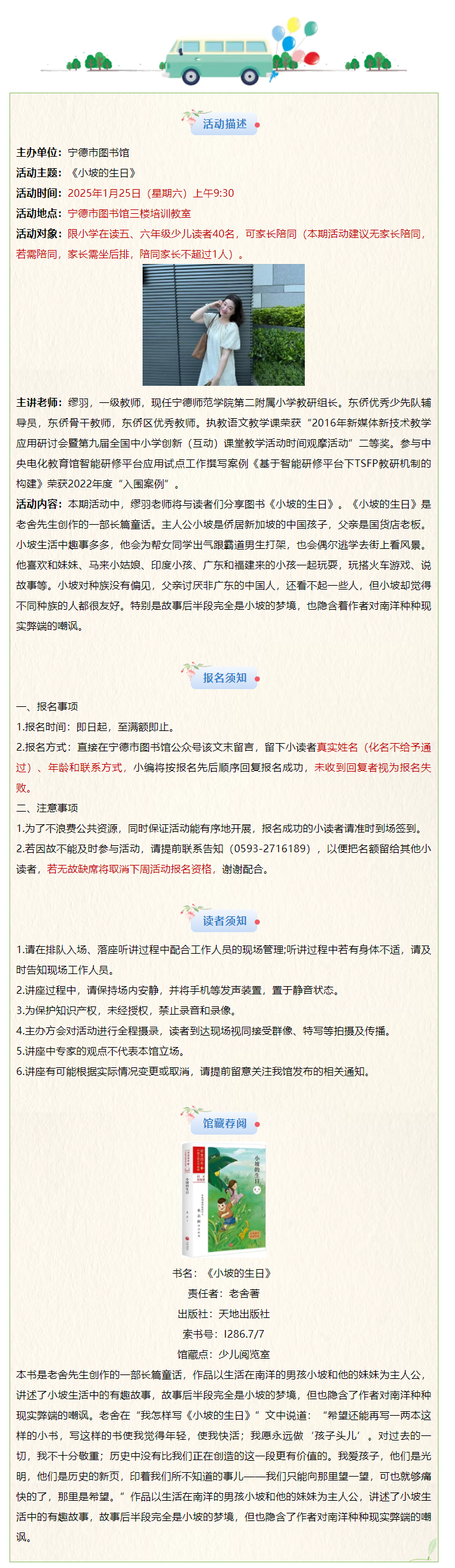 活动报名|第18期“宁图学堂·经典导读伴成长”品牌阅读活动:《小坡的生日》