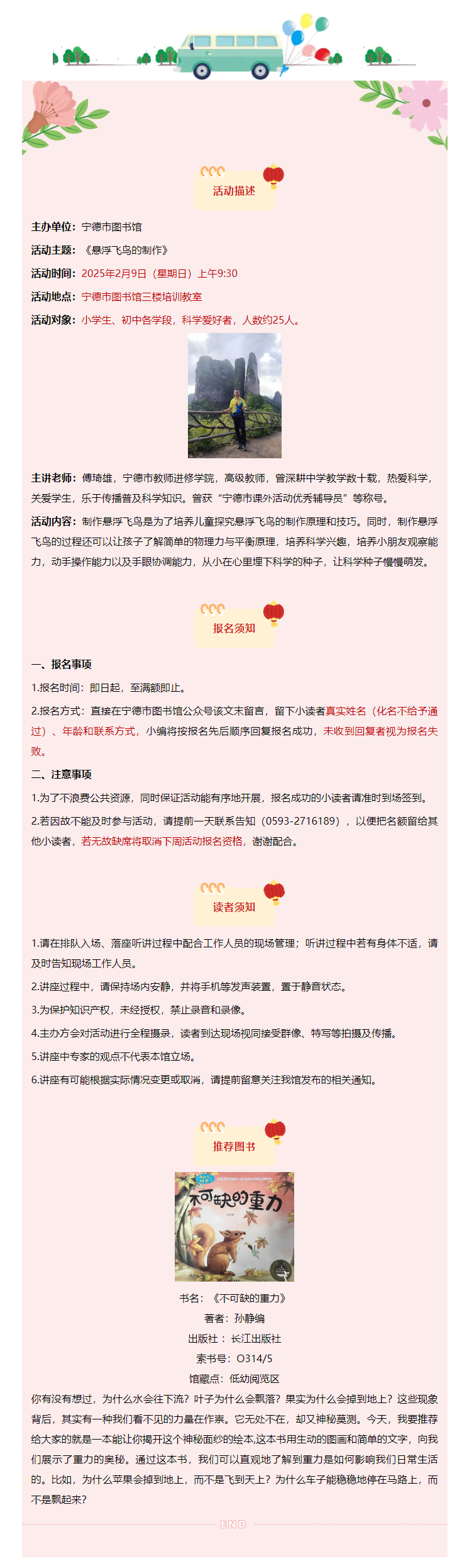 活动报名|第84期“与探索同行”科学素养主题活动:《悬浮飞鸟的制作》