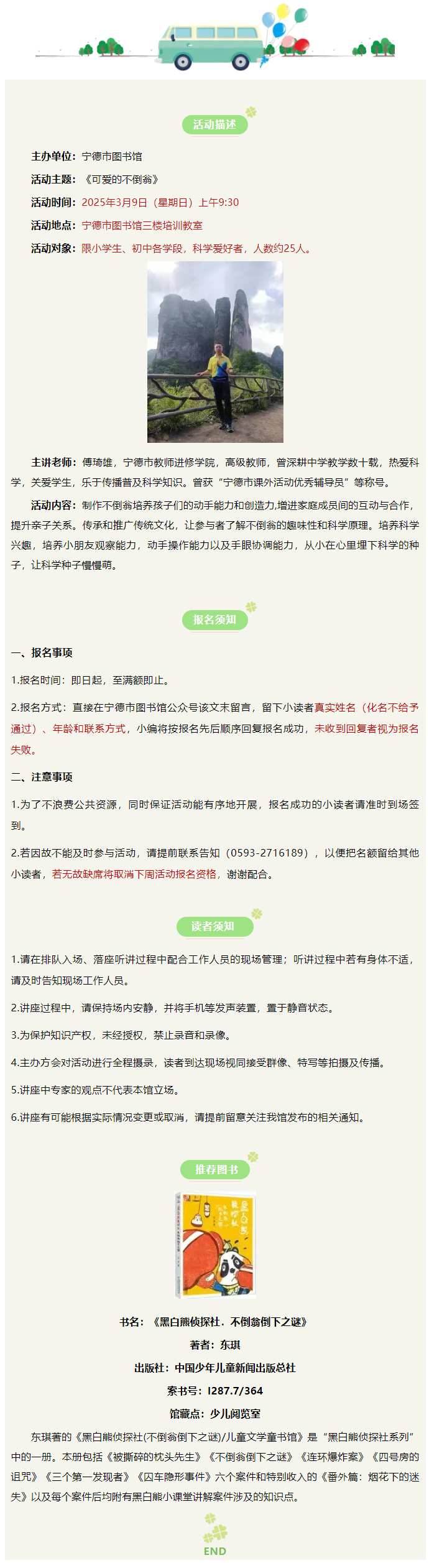 活动报名|第87期“与探索同行”科学素养主题活动:《可爱的不倒翁》