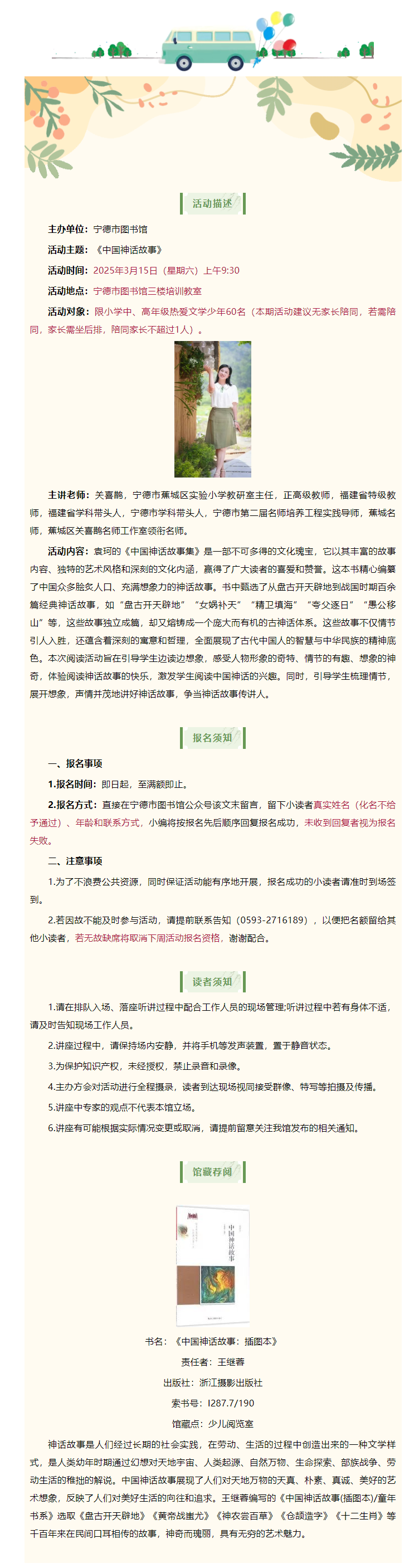 活动报名|第21期“宁图学堂·经典导读伴成长”品牌阅读活动:《中国神话故事》