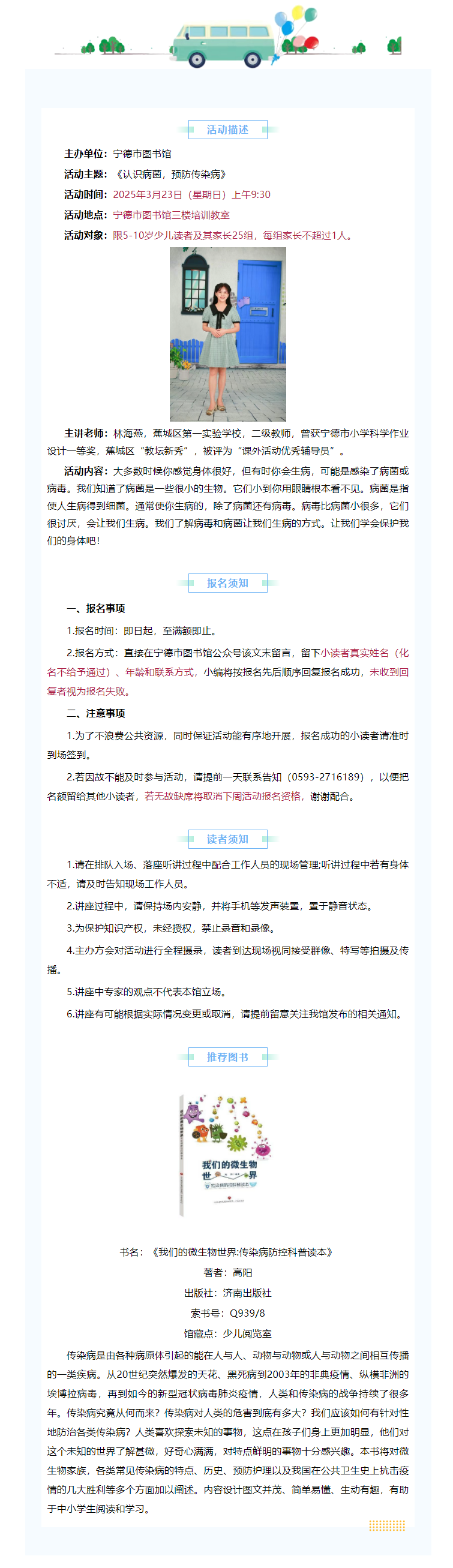 活动报名|第89期“与探索同行”科学素养主题活动:《认识病菌,预防传染病》