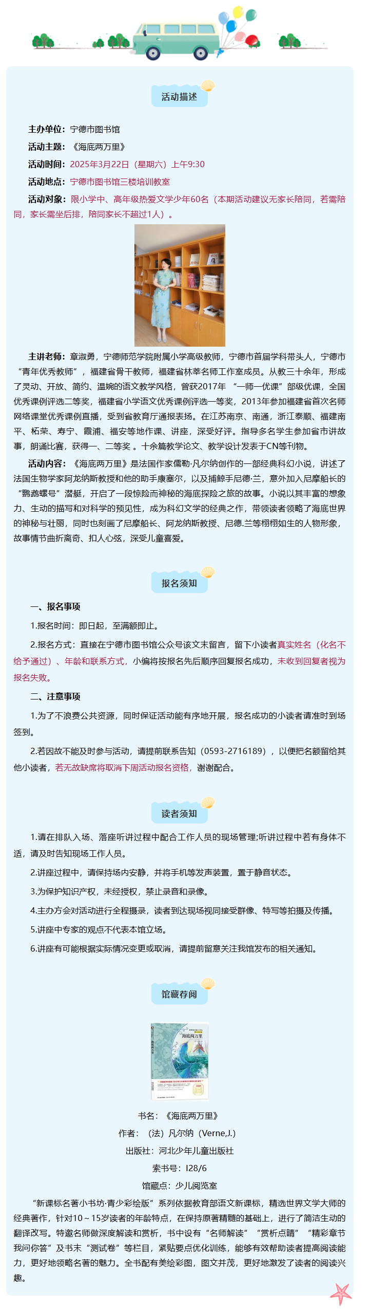 活动报名|第22期“宁图学堂·经典导读伴成长”品牌阅读活动:《海底两万里》