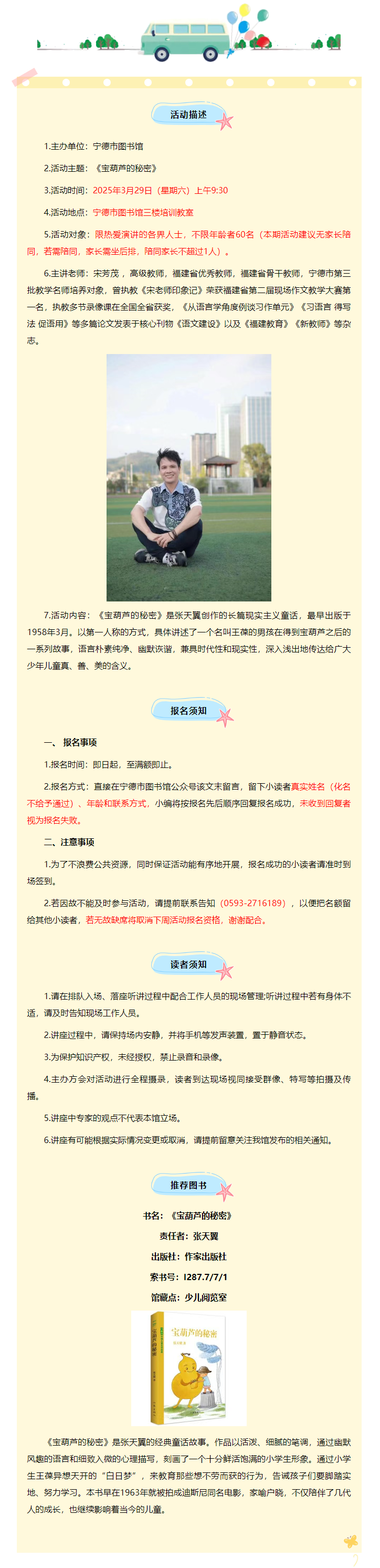 活动报名|第23期“宁图学堂·经典导读伴成长”品牌阅读活动:《宝葫芦的秘密》