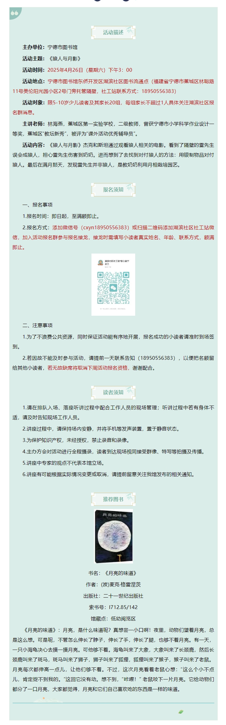 活动报名|第92期“与探索同行”科学素养主题活动:《狼人与月影》