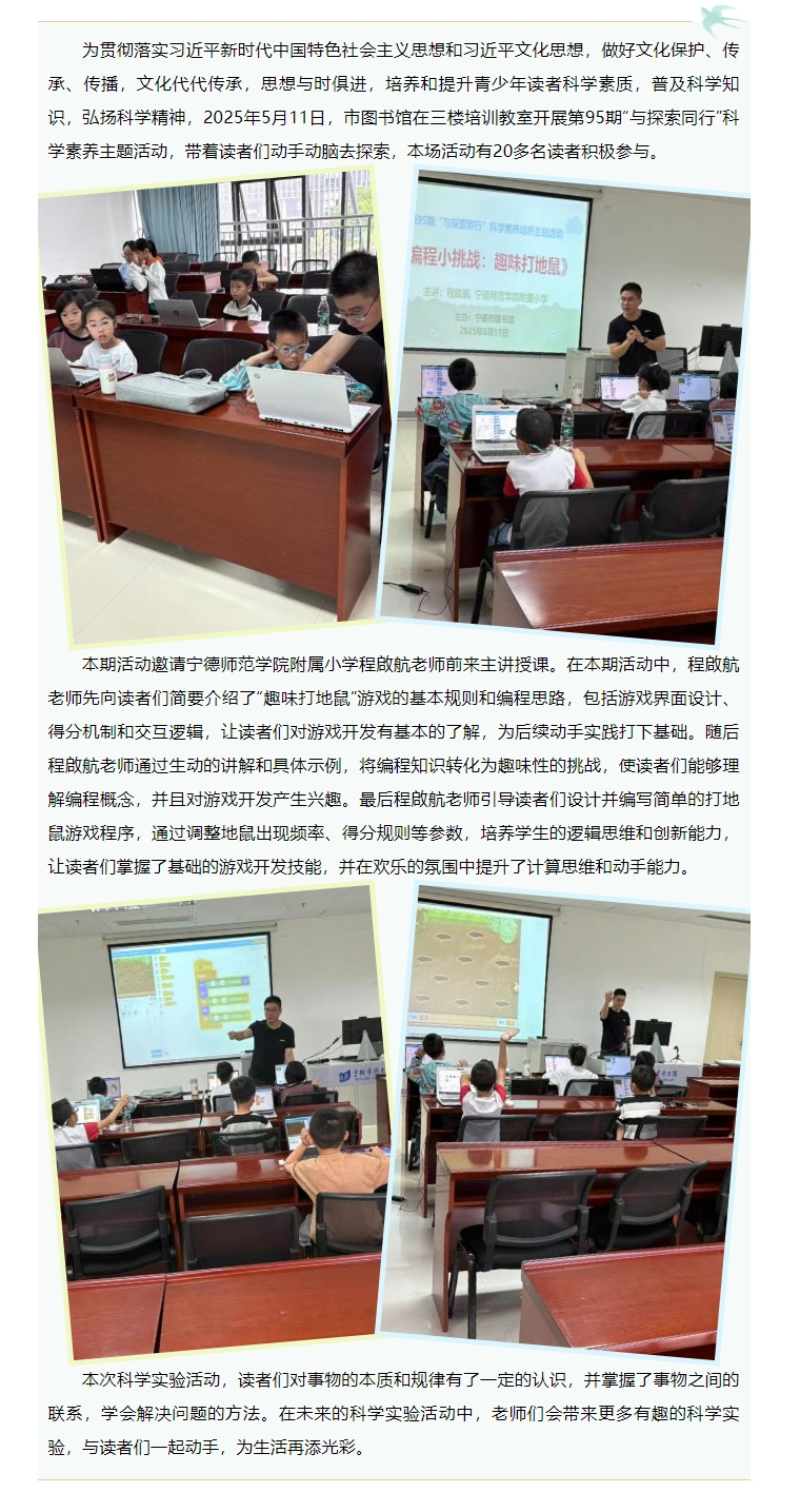 第95期“与探索同行”科学素养主题活动《编程小挑战:趣味打地鼠》成功举办