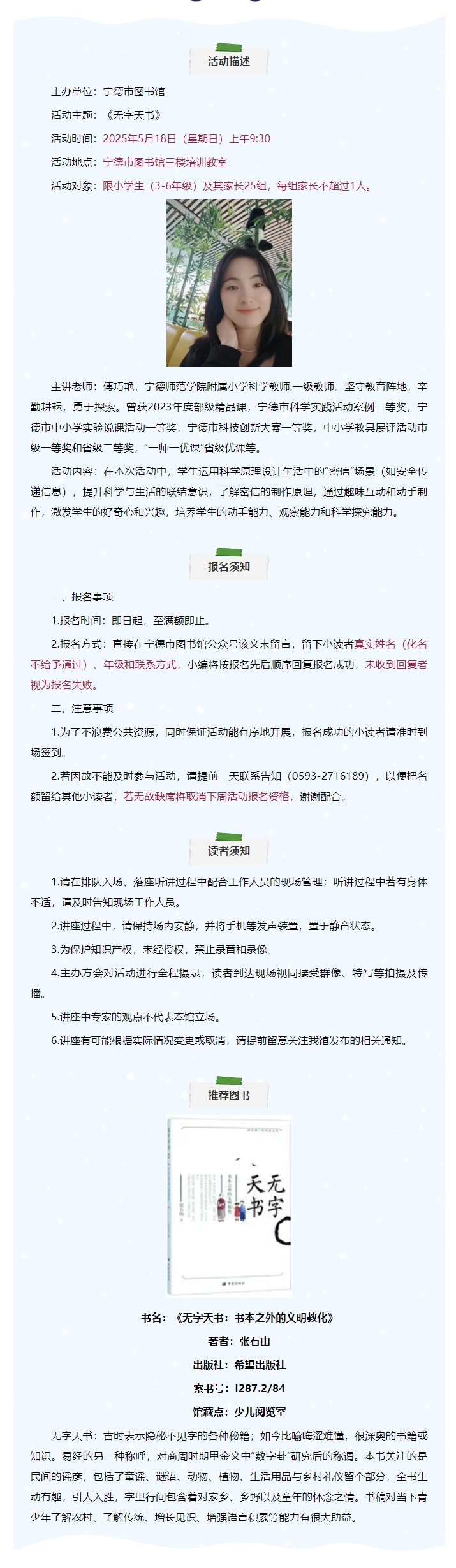 版权所有:宁德市图书馆|地址:宁德市东侨经济技术开发区华庭路1号 联系电话:0593-2716189|邮政编码:352100|备案号:闽ICP备14010852号-1 |技术支持:派铁网络