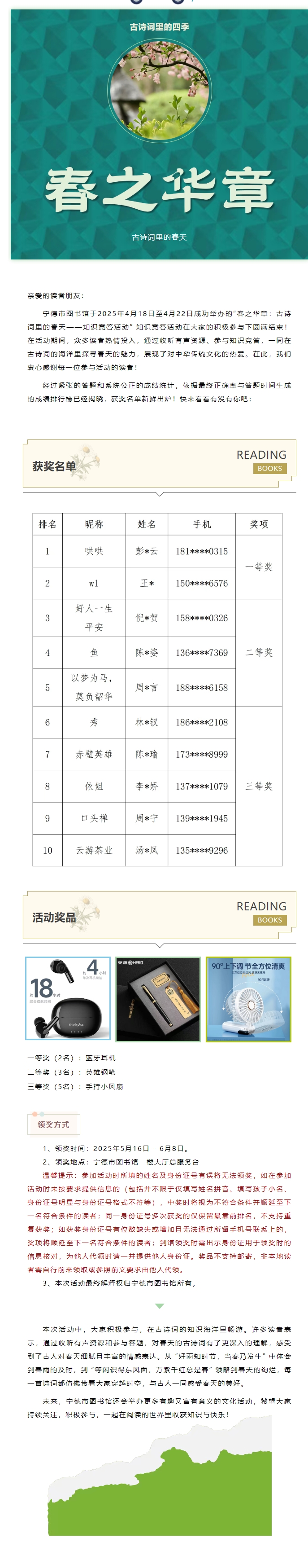获奖通知|春之华章:古诗词里的春天——知识竞答活动