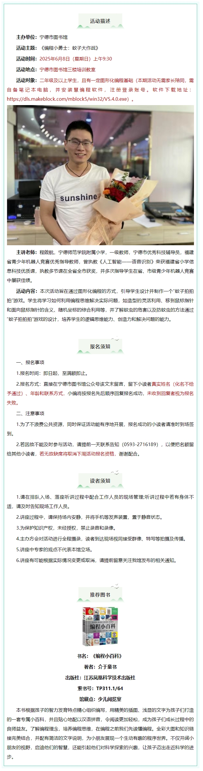 活动报名|第98期“与探索同行”科学素养主题活动:《编程小勇士:蚊子大作战》