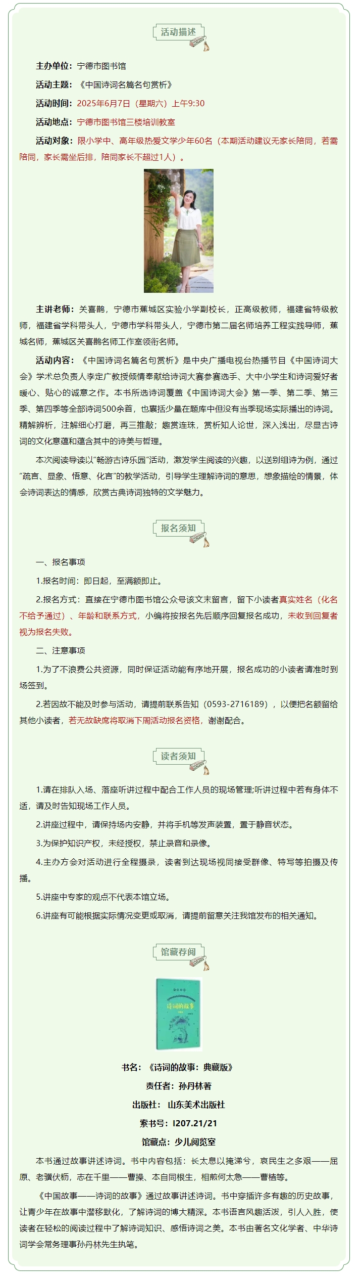 活动报名|第31期“宁图学堂·经典导读伴成长”品牌阅读活动:《中国诗词名篇名句赏析》