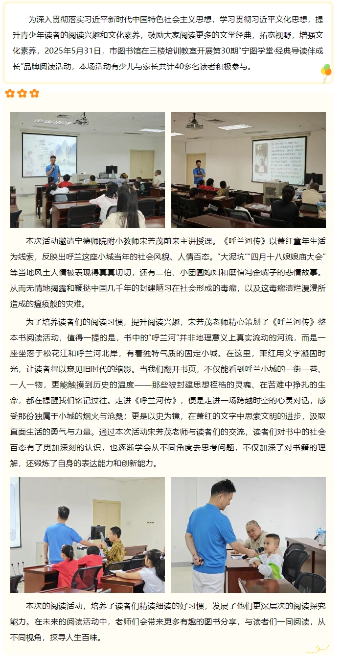 第30期“宁图学堂·经典导读伴成长”品牌阅读活动《呼兰河传》成功举办