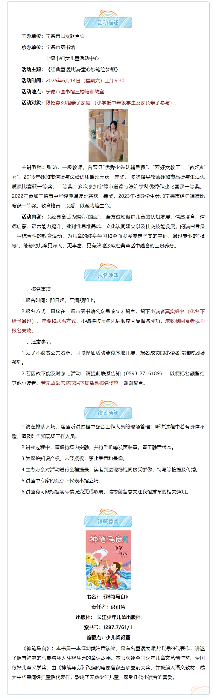 活动报名|“阅读暖童心 书香润家庭”第三期亲子诵读活动:《经典童话共读·童心妙笔绘梦想》