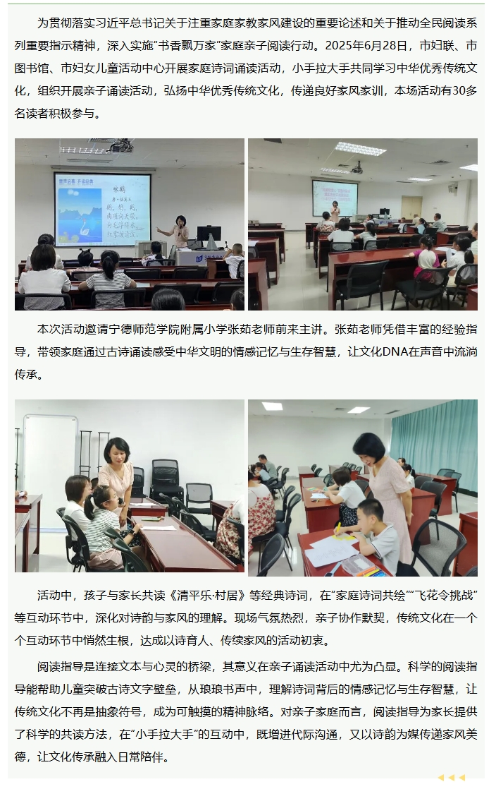 “阅读暖童心 书香润家庭”第四期亲子诵读活动:《小手拉大手 诗韵传家风》成功举办