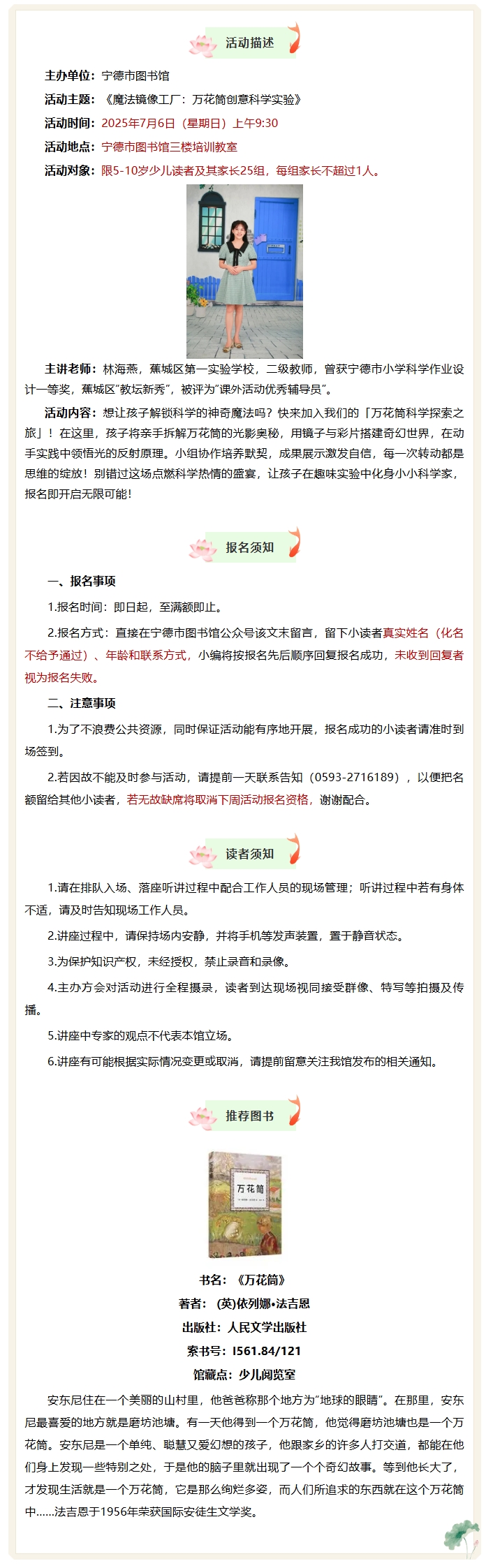 活动报名|第101期“与探索同行”科学素养主题活动:《魔法镜像工厂:万花筒创意科学实验》