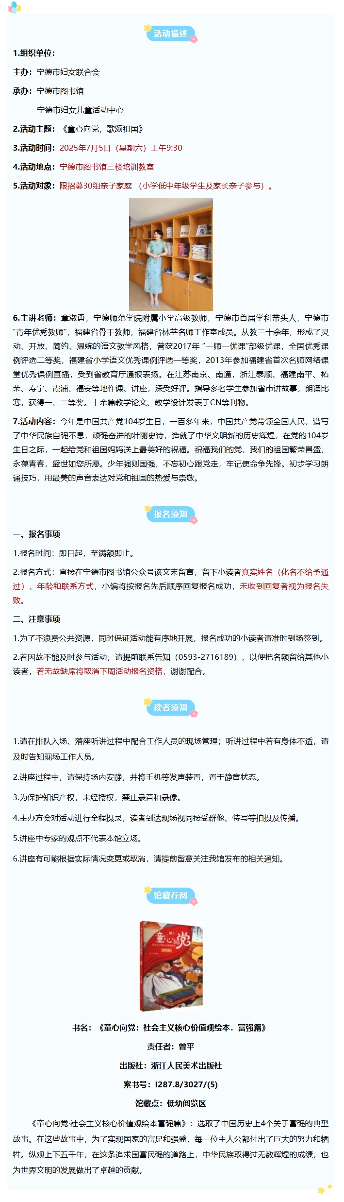 活动报名|“阅向未来”名家讲坛——“阅读暖童心 书香润家庭”第五期亲子诵读活动:《童心向党,歌颂祖国》