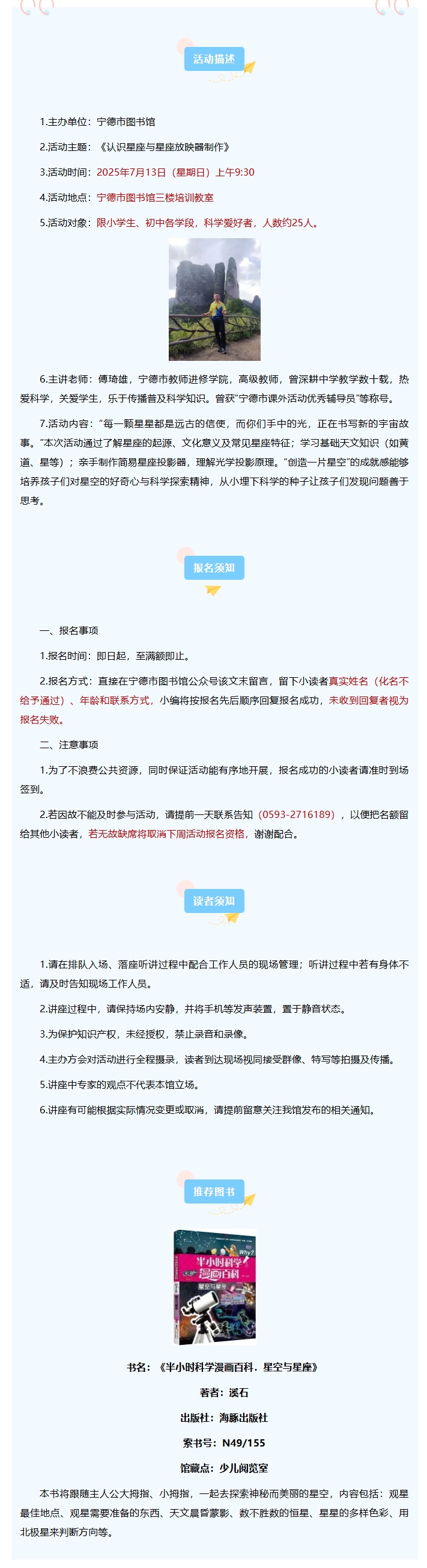 活动报名|第103期“与探索同行”科学素养主题活动:《认识星座与星座放映器制作》