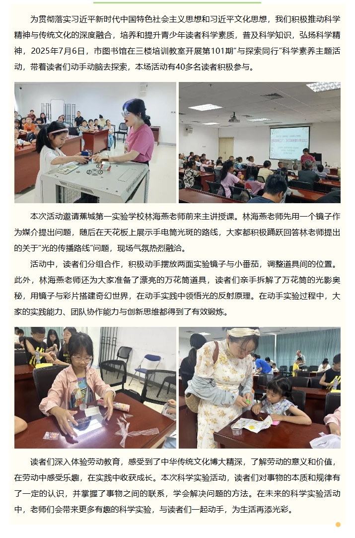 第101期“与探索同行”科学素养主题活动《魔法镜像工厂:万花筒创意科学实验》