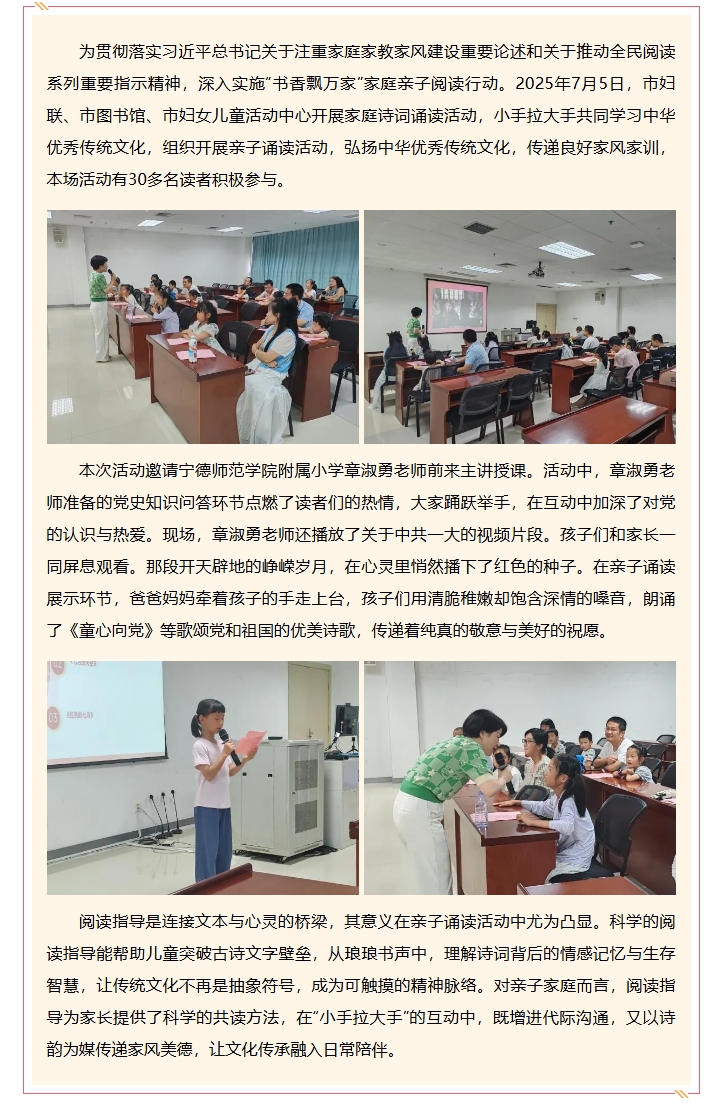 “阅向未来”名家讲坛——“阅读暖童心 书香润家庭”第五期亲子诵读活动:《童心向党 歌颂祖国》成功举办