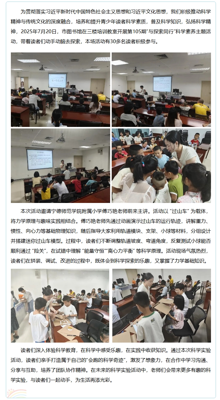 第105期“与探索同行”科学素养主题活动《做一个过山车》成功举办