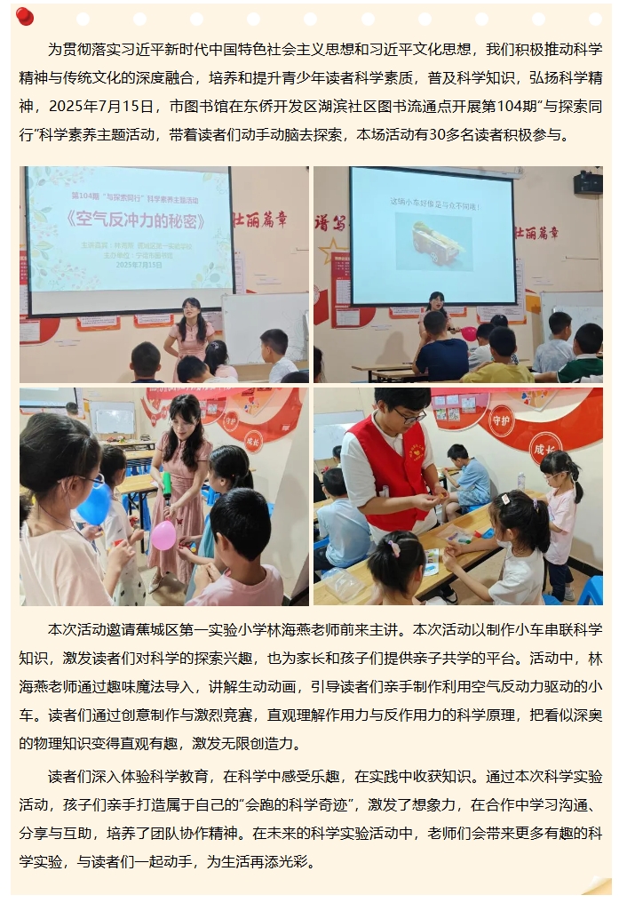第104期“与探索同行”科学素养主题活动《空气反冲力的秘密》成功举办