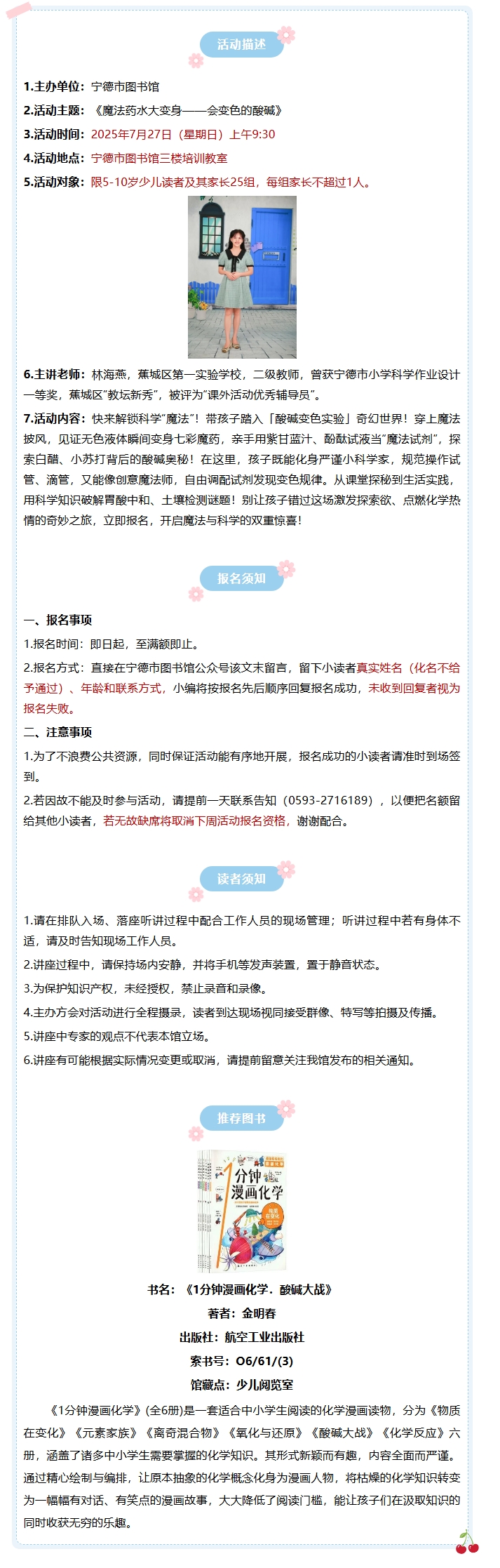 活动报名|第106期“与探索同行”科学素养主题活动:《魔法药水大变身——会变色的酸碱》