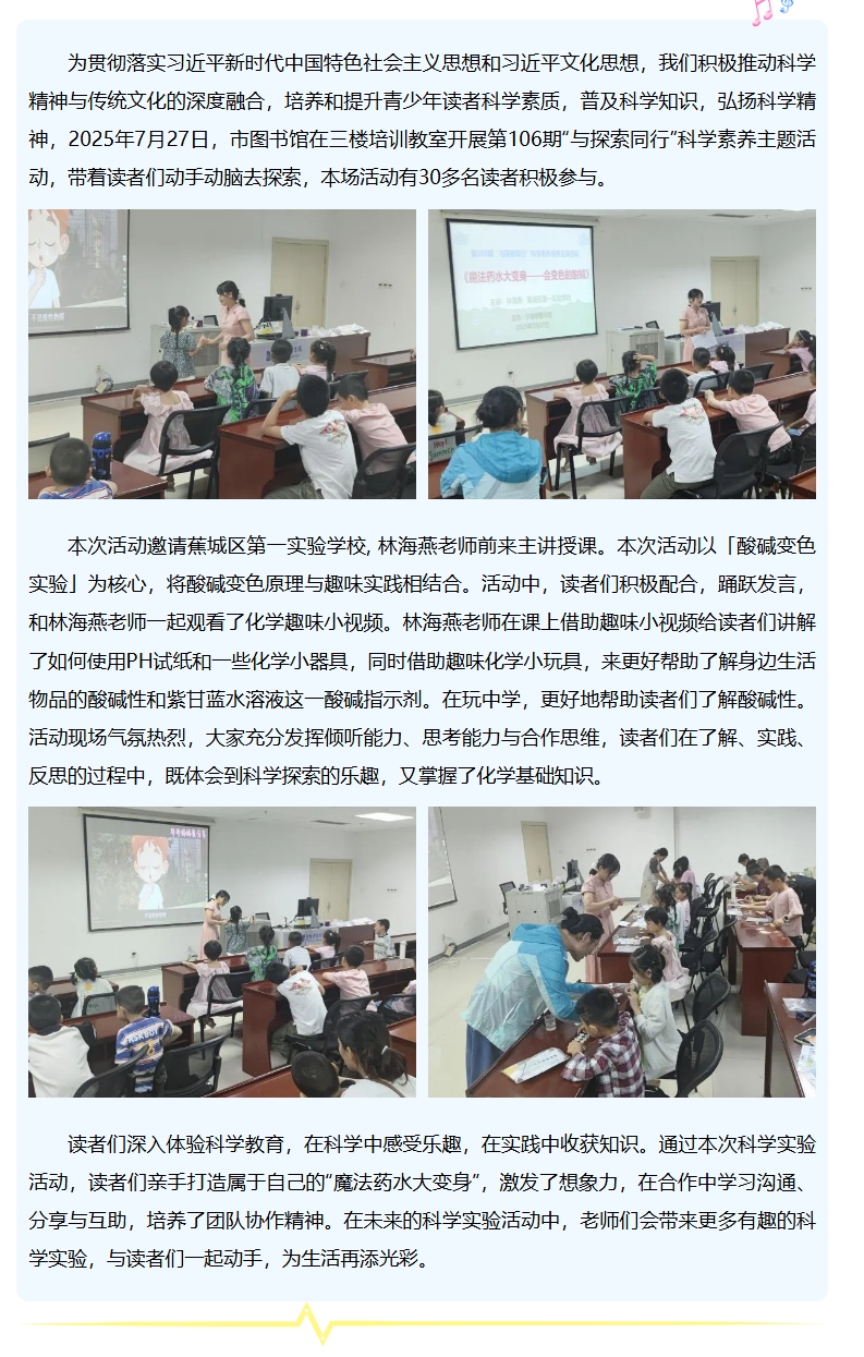 第106期“与探索同行”科学素养主题活动《魔法药水大变身——会变色的酸碱》成功举办