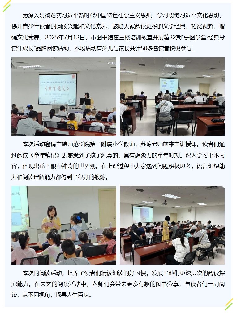 第32期“宁图学堂·经典导读伴成长”品牌阅读活动《童年笔记》成功举办