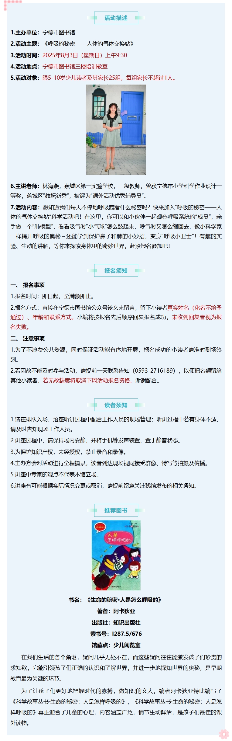 活动报名|第107期“与探索同行”科学素养主题活动:《呼吸的秘密——人体的气体交换站