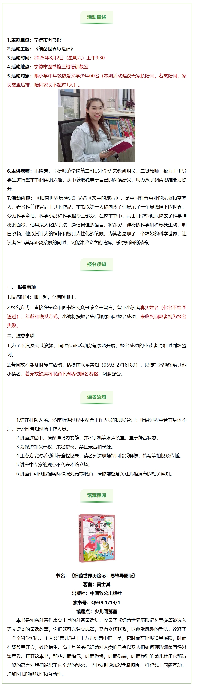 活动报名|第34期“宁图学堂·经典导读伴成长”品牌阅读活动:《细菌世界历险记》