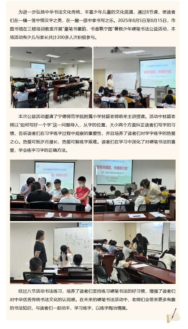 2025年8月“童笔书墨韵,书香飘宁图”暑假青少年硬笔书法公益活动成功举办
