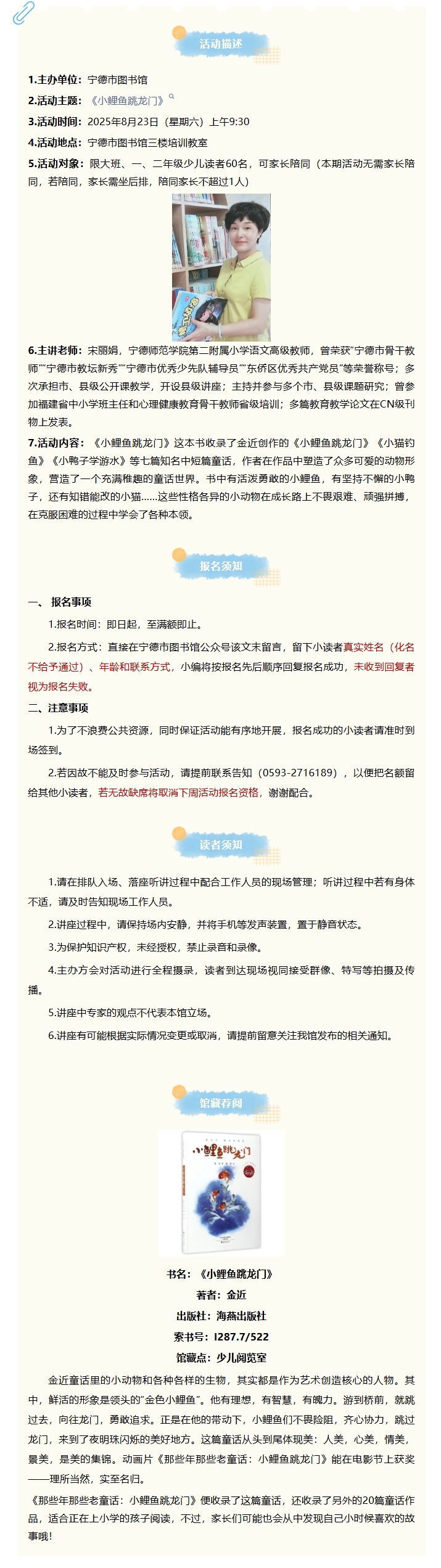 活动报名|第36期“宁图学堂·经典导读伴成长”品牌阅读活动:《小鲤鱼跳龙门》
