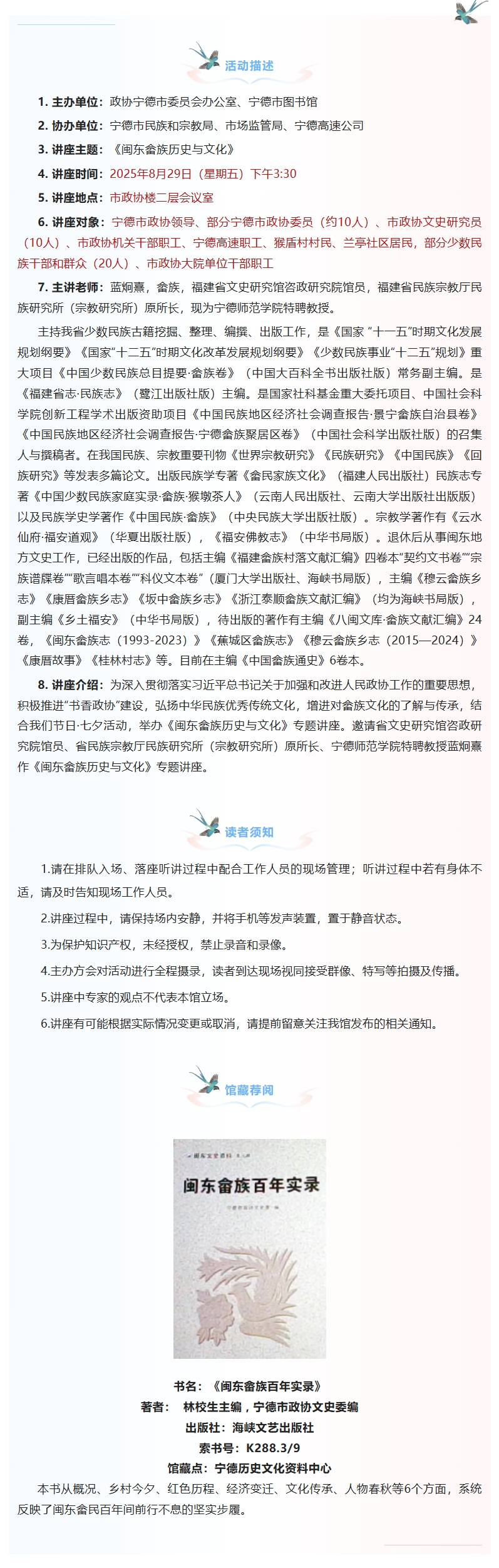 讲座预告|宁德市民文化大讲堂:《闽东畲族历史与文化》专题讲座