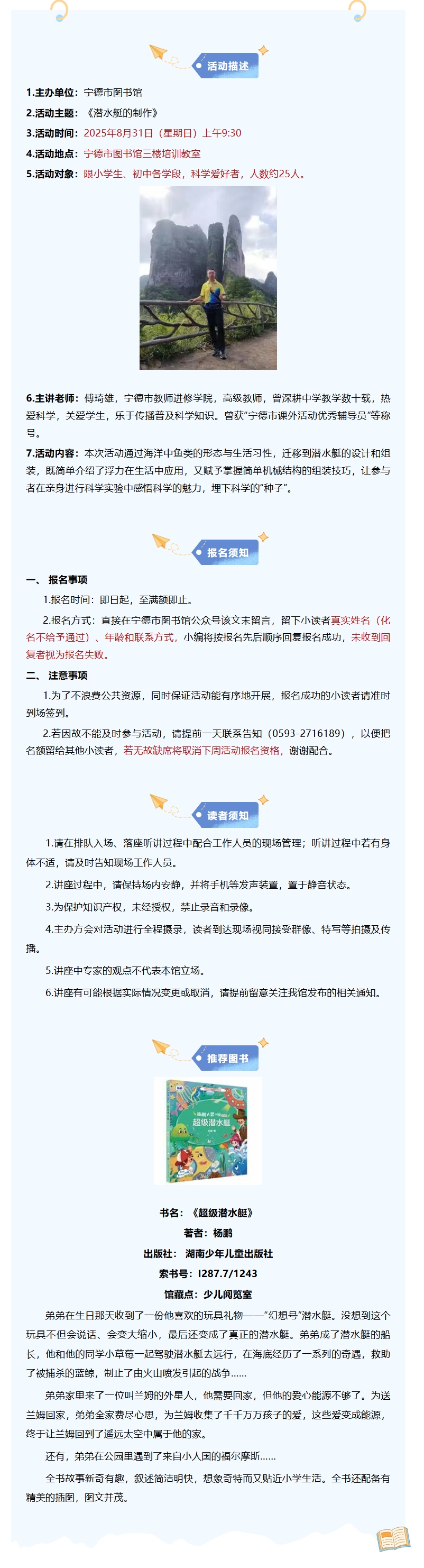 活动报名|第109期“与探索同行”科学素养主题活动:《潜水艇的制作》