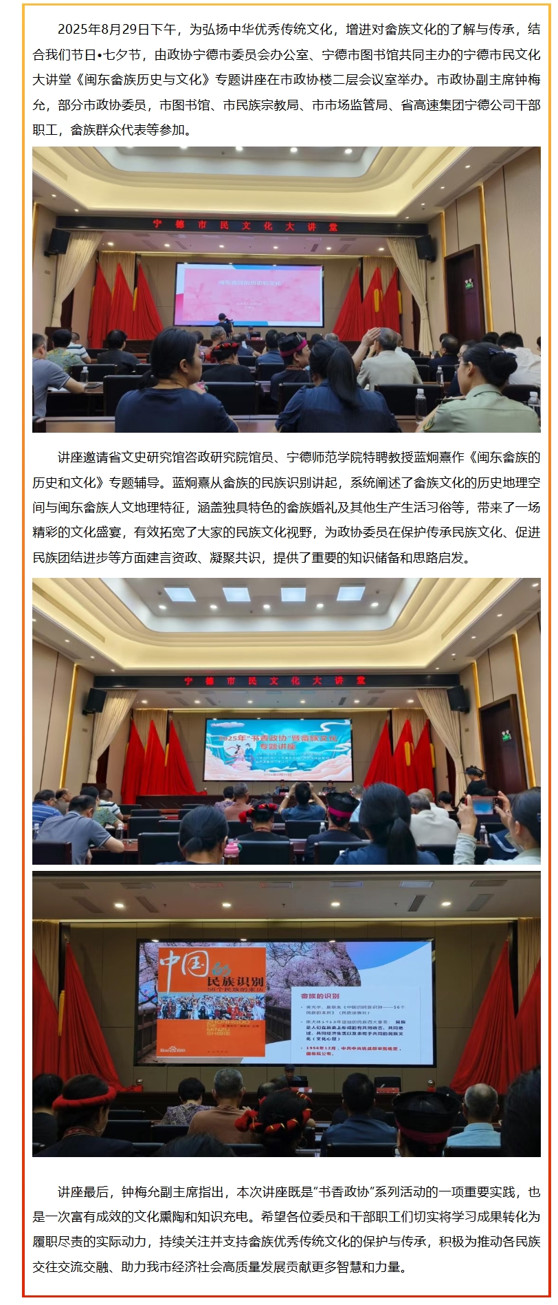 宁德市图书馆开展宁德市民文化大讲堂《闽东畲族历史与文化》专题讲座