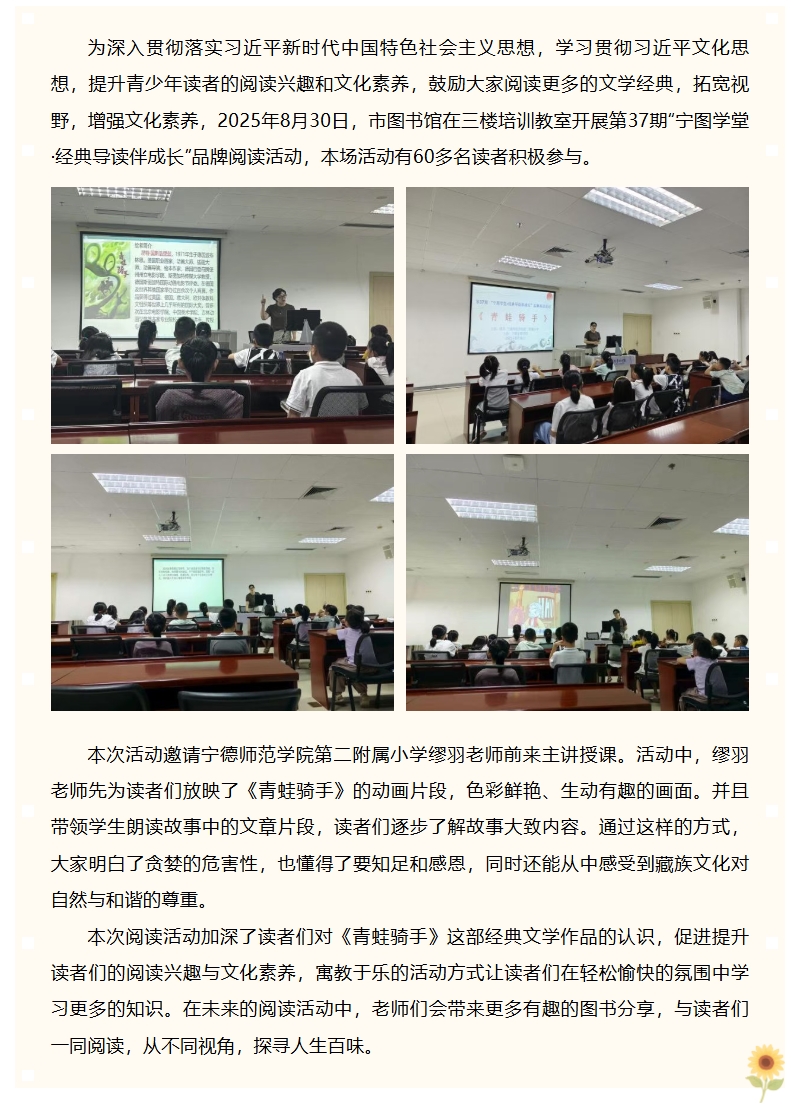 第37期“宁图学堂·经典导读伴成长”品牌阅读活动《青蛙骑手》成功举办