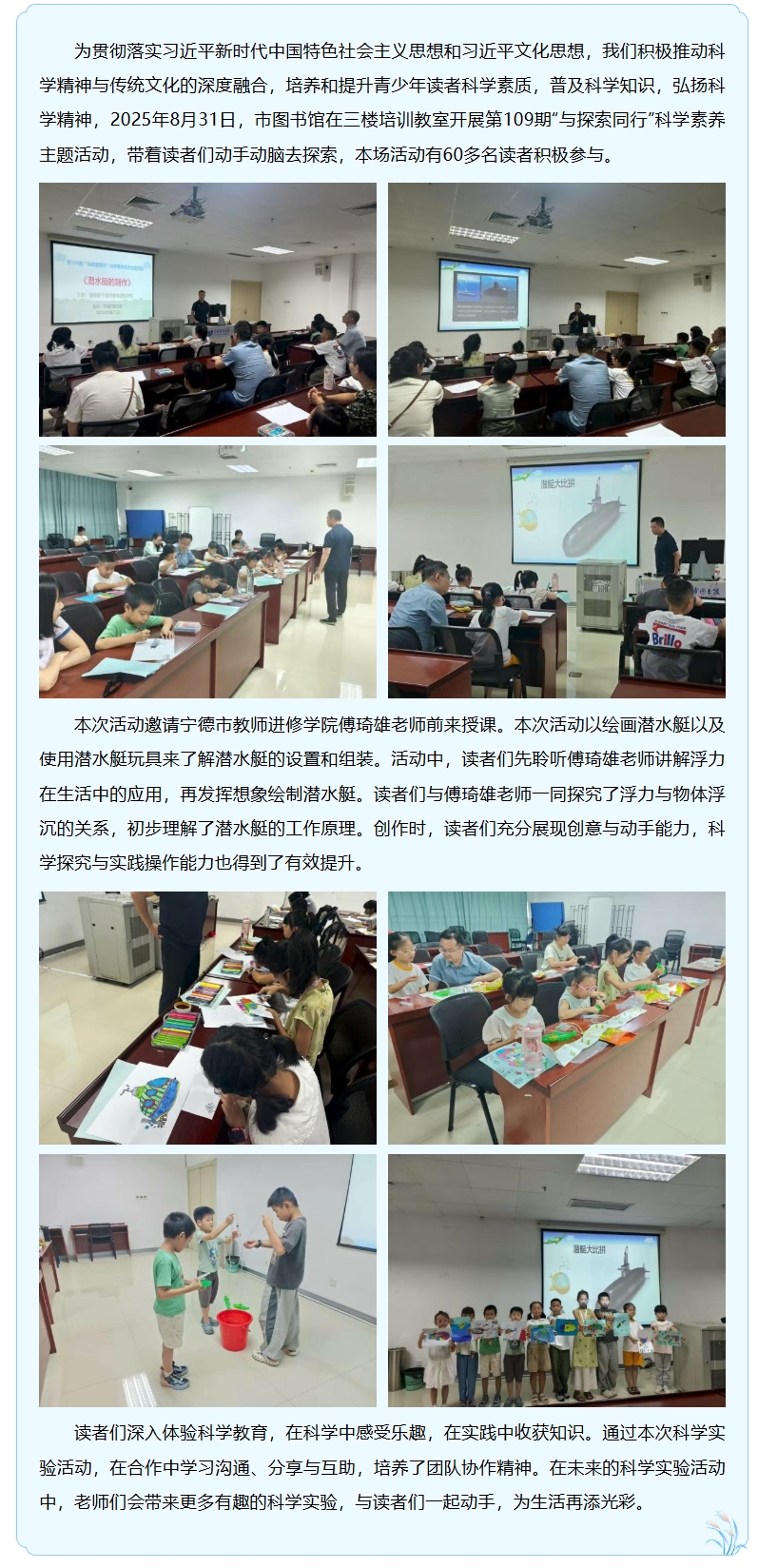 第109期“与探索同行”科学素养主题活动《潜水艇的制作》成功举办