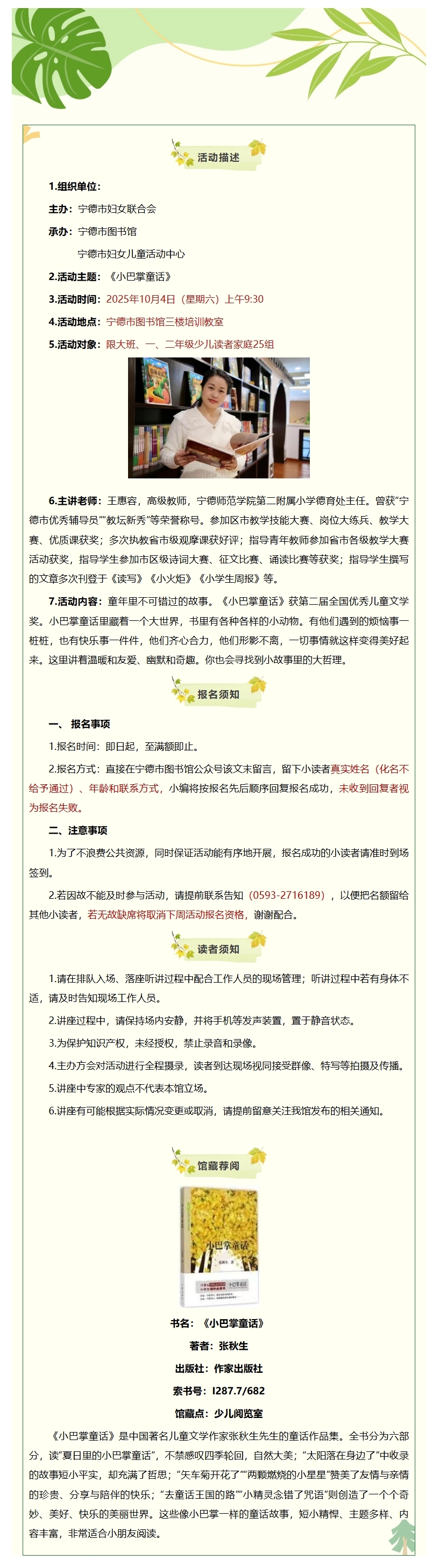 活动报名|第11期“阅读暖童心 书香润家庭”亲子诵读活动:《小巴掌童话》