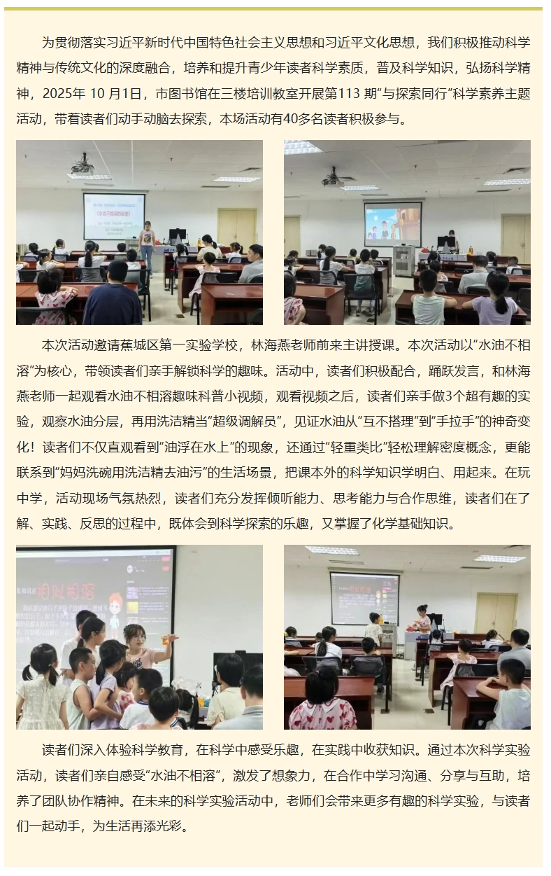 第113期“与探索同行”科学素养主题活动“水油不相溶的秘密”成功举办