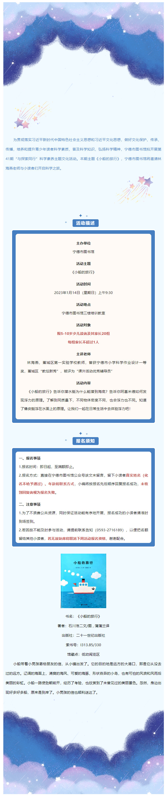 活动报名|第41期“与探索同行”科学素养主题文化活动:《小船的旅行》